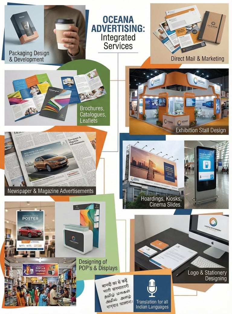 Known for its many specialties, Oceana Advertising offers an integrated mix of services to meet your communication requirement for businesses ranging from small one-man operations to mega ad campaigns for corporates.